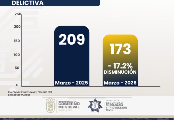 Al mes de marzo de 2026, la ciudad de Puebla se colocó como la cuarta capital del país con más