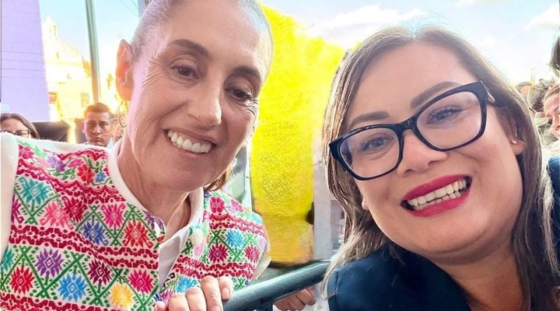 Durante el acto de la entrega de la “Pensión Mujeres Bienestar”, desde Acatzingo, Puebla, estuvo acompaña por la diputada federal, Julieta Vences.