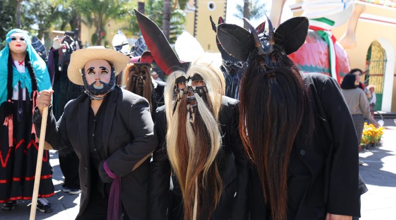 Posteriormente, los asistentes se trasladaron a la Casa del Campesino, flanqueados por los integrantes de la “Danza de los Diablitos”, grupo artístico del Instituto Jaime Torres Bodet, para visitar la ofrenda monumental y la exposición “Intervención de cráneos”.