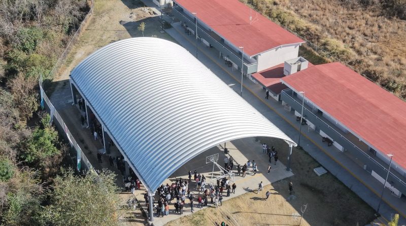 El presidente municipal, Omar Muñoz, entregó el techado de la cancha de usos múltiples en la Escuela Superior de Ciencias y Humanidades, en la localidad de Sanctórum.