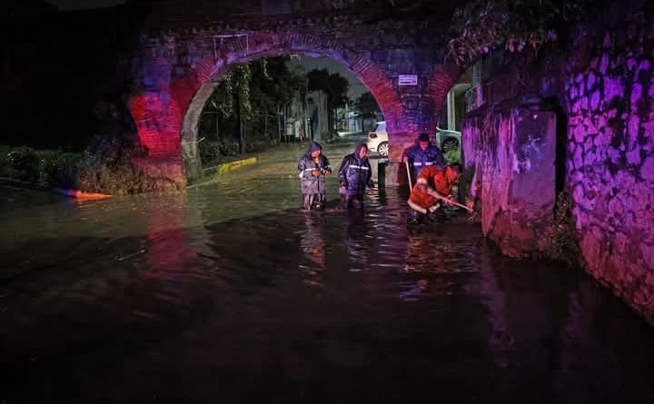 El munícipe asistió la noche del martes a la calle Puebla en Sanctorum y a la Reserva Territorial Quetzalcóatl, donde se hicieron labores de limpieza y desazolve para bajar el nivel del agua.