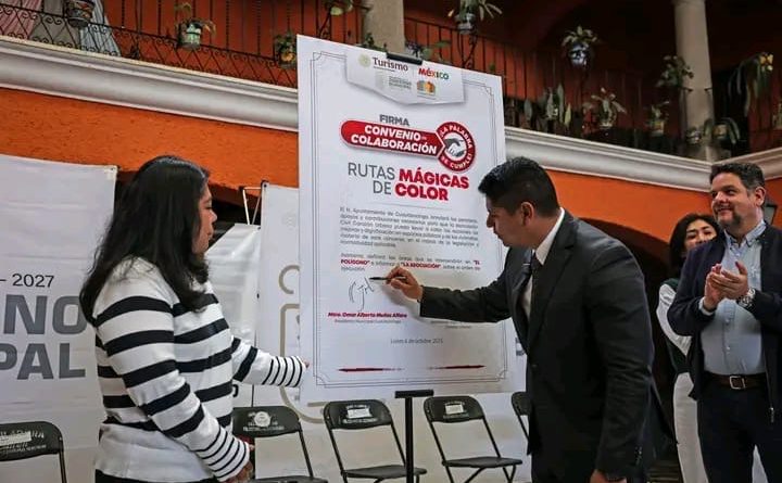 El presidente municipal de Cuautlancingo, Omar Muñoz, firmó un convenio de colaboración institucional con la asociación civil “Corazón Urbano”, denominado “Rutas Mágicas de Color”, con el objetivo de rehabilitar y embellecer la imagen urbana del municipio. El proyecto es impulsado por la Secretaría de Turismo del gobierno federal.