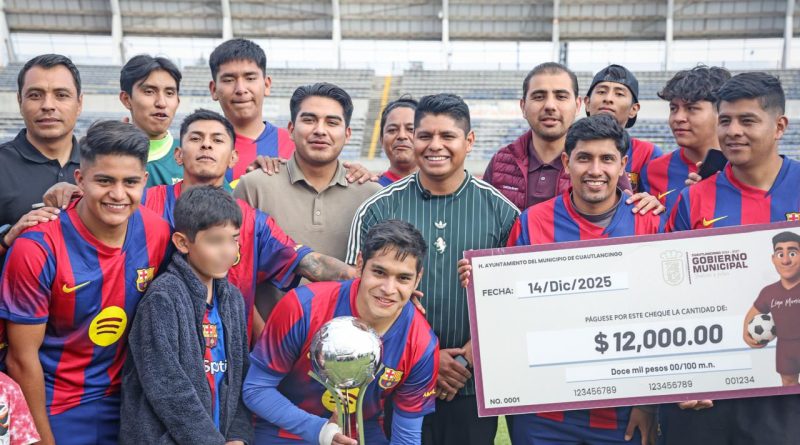 Omar Muñoz, presidente municipal de Cuautlancingo, realizó la premiación de la final de la Liga Municipal de Futbol en la que triunfó el equipo Barcelona con un marcador 5-1 sobre el Cachorros. En tercer lugar quedó el equipo La Raza.