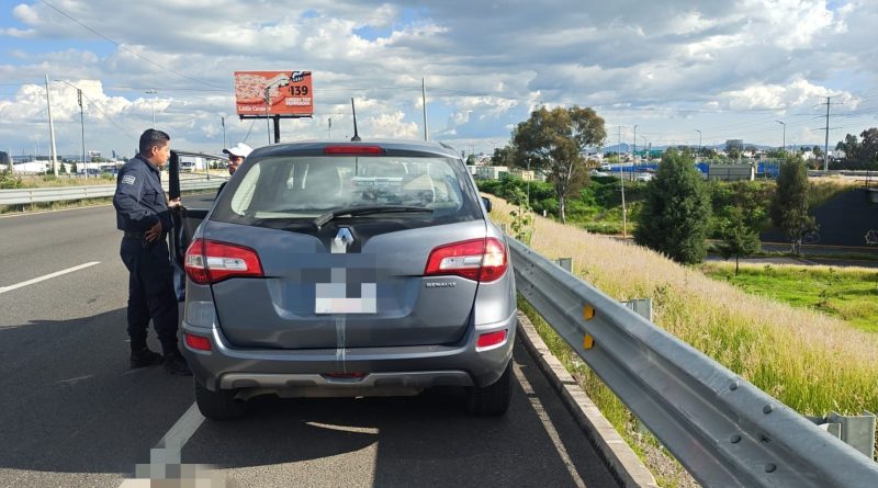 Durante un recorrido de protocolo, elementos policíacos recibieron una alerta de circulación de un vehículo Renault color gris que interceptaron en el periférico ecológico a la altura de boulevard Forjadores.