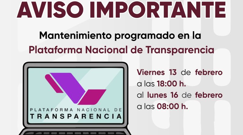 Durante este periodo podrían registrarse intermitencias, lentitud en la navegación, así como indisponibilidad parcial o total de los servicios relacionados con solicitudes de información, consultas públicas, carga de obligaciones de transparencia y demás funcionalidades alojadas en dicha plataforma.