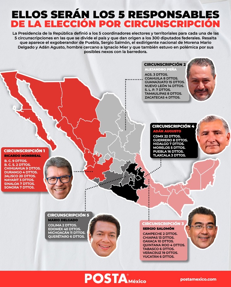 Morena definió a los coordinadores de las cinco circunscripciones electorales en las que está dividido el país, el objetivo es que sean los líderes del partido hegemónico en la elección de 2027, la llamada intermedia.