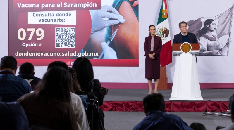 La Jefa del Ejecutivo Federal puntualizó que en un año sólo hay 9 mil 400 casos de sarampión. Ante esto, reiteró el llamado a que se vacunen los grupos prioritarios: niñas y niños de entre 6 meses de edad y 12 años, que no ha recibido vacuna o cuya primera dosis fuera hace más de 6 meses; así como personas de 13 a 49 años no vacunadas o con esquema incompleto que viven en 11 entidades que concentran la mayor incidencia por 100 mil habitantes, los cuales son: Jalisco, Colima, Chiapas, Sinaloa, Durango, Ciudad de México, Nayarit, Tabasco, Sonora, Tlaxcala y Puebla.