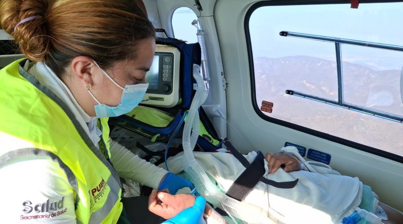 De acuerdo con el reporte, la paciente presentó una emergencia obstétrica que requirió manejo especializado. Ante esta situación, el personal médico determinó realizar su traslado vía aérea a la capital poblana.