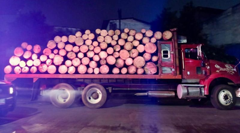 A través de un patrullaje en la localidad de Ixtahuiata, elementos de la Policía Estatal Forestal y de la Policía Municipal ubicaron un camión de plataforma que transportaba troncos de madera.