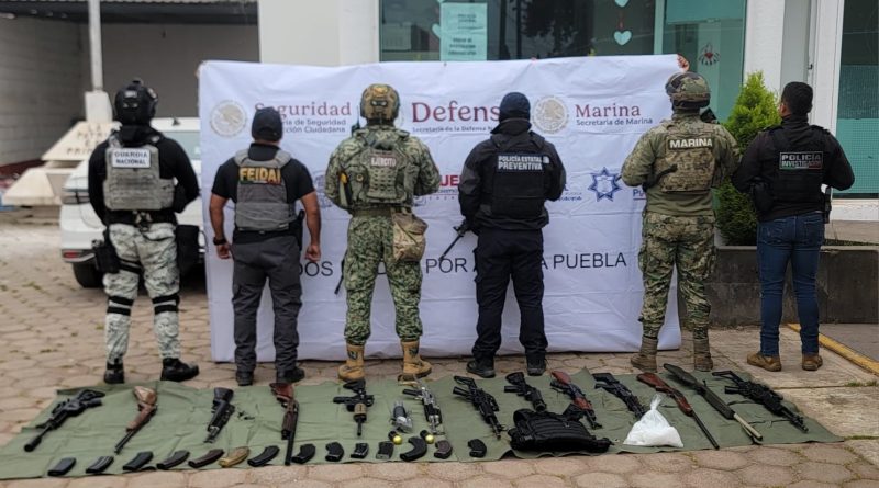 Durante la intervención se aseguraron 12 armas largas, dos lanzagranadas, dos granadas, cargadores abastecidos, un chaleco balístico, una bolsa con sustancia granulada con características similares al cristal con un peso aproximado de kilo y medio, además de un vehículo.